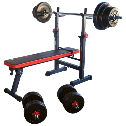 Trainingsbank Combo mit Lang- & Kurzhantelset 50-90 kg