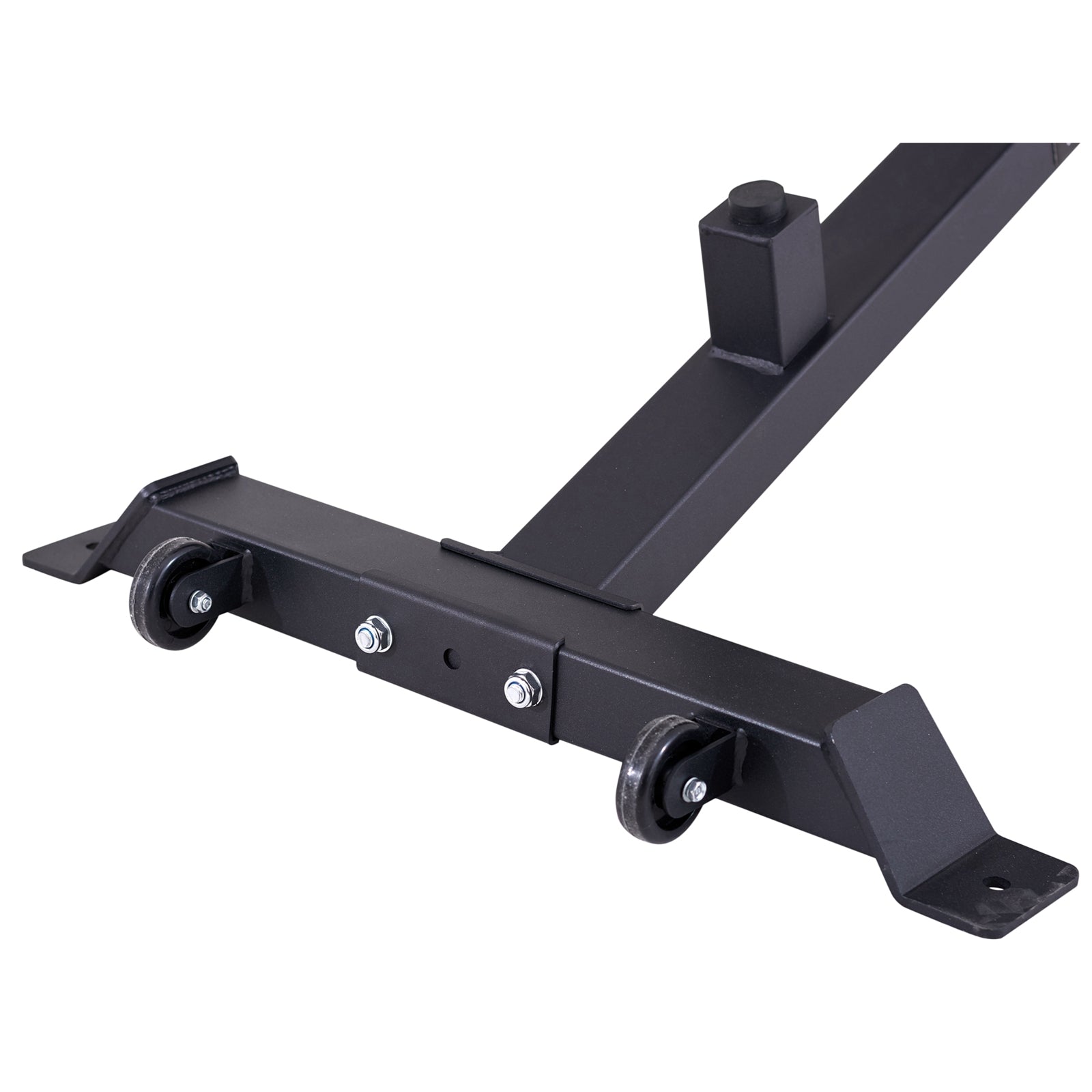 Ideales Training für Schulter-, Arme-, Bauch und Brust. Für dein Ideales Training sind keine Grenzen gesetzt. Auf dieser Hantelbank, lässt sich perfekt Bankdrücken mit Kurzhanteln oder Langhanteln ausführen. Trizepsmuskelaufbau mit Curlstange oder Langhantel. Bizeps Muskeltraining für den Aufbau der Bizeps brachialis. Sit-ups für einen flachen Bauch und Sixpack. Die Beinfixierung mit übergroßen Schaumstoffrollen hilft beim Bauch Training oder negativen Bankdrücken. Die Rückenlehne kann in 6 Schrägpositionen und in 2 negativen Positionen von -15° bis 75° verstellt werden. Hartgummi an den Standfüßen schonen den Boden und verhindern ein Verrutschen der Hantelbank. Durch das Hartgummi und der Stabilen Bauweise, sorgt die Hantelbank für noch mehr Stabilität und Sicherheit beim Training. Durch die Transportrollen kann die Hantelbank schnell und einfach geschoben werden. Der angebrachte Griff vorn erleichtert das umsetzen.