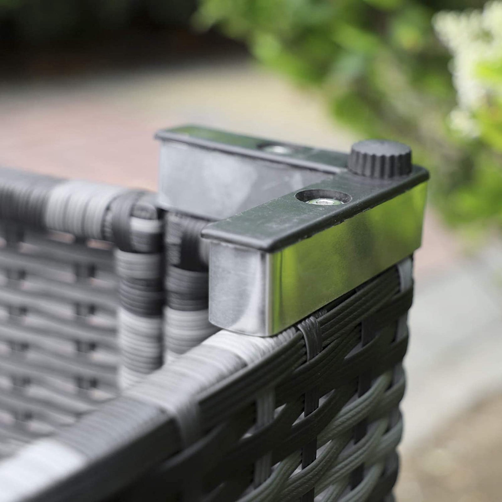 - Farbe: Poly Rattan in Hell- & Dunkel-Grau gemischt, Bezüge in Dunkelgrau (Die Farbe kann aufgrund Sonneneinstrahlung, Monitoreinstellung und Helligkeit abweichen!).